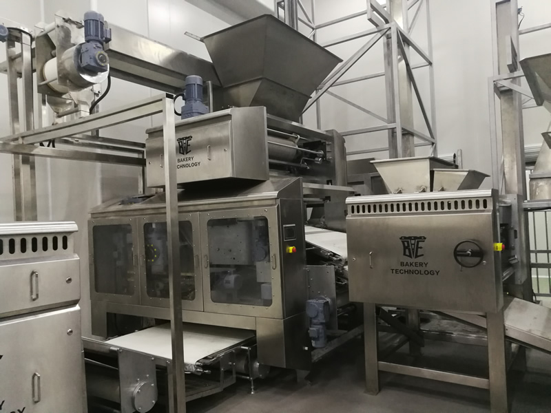 配合喂料機(jī)將軋薄的面皮切片并依次疊加至8~16層,并輸送至成型軋輥,該機(jī)能將回面始終處于面皮底部,經(jīng)切片式疊層機(jī)生產(chǎn)出來的餅干層次感強(qiáng)、口感松脆、酥化程度極高,配合機(jī)器上的撒酥機(jī),可生產(chǎn)蘇打餅干和其它高檔餅干。